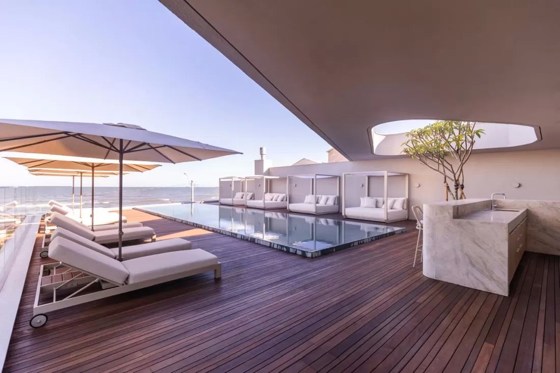 Em um espaço projetado para proporcionar conforto em todos os momentos, o clube de praia conta com uma piscina no segundo pavimento, com vista privilegiada para o mar. Além disso, um bar e espaço para contemplação do nascer e pôr do sol, tudo o que você precisa para um verão inesquecível.